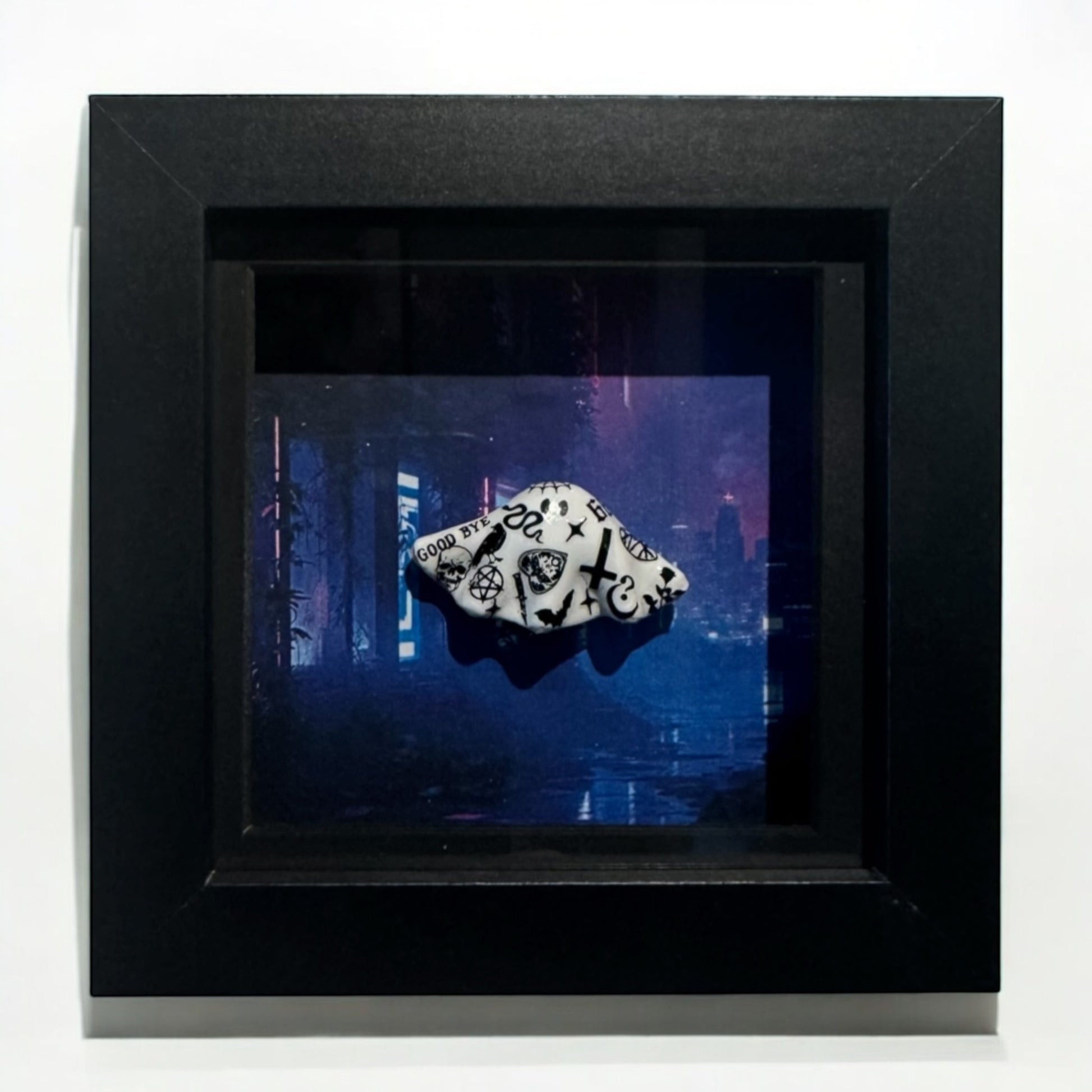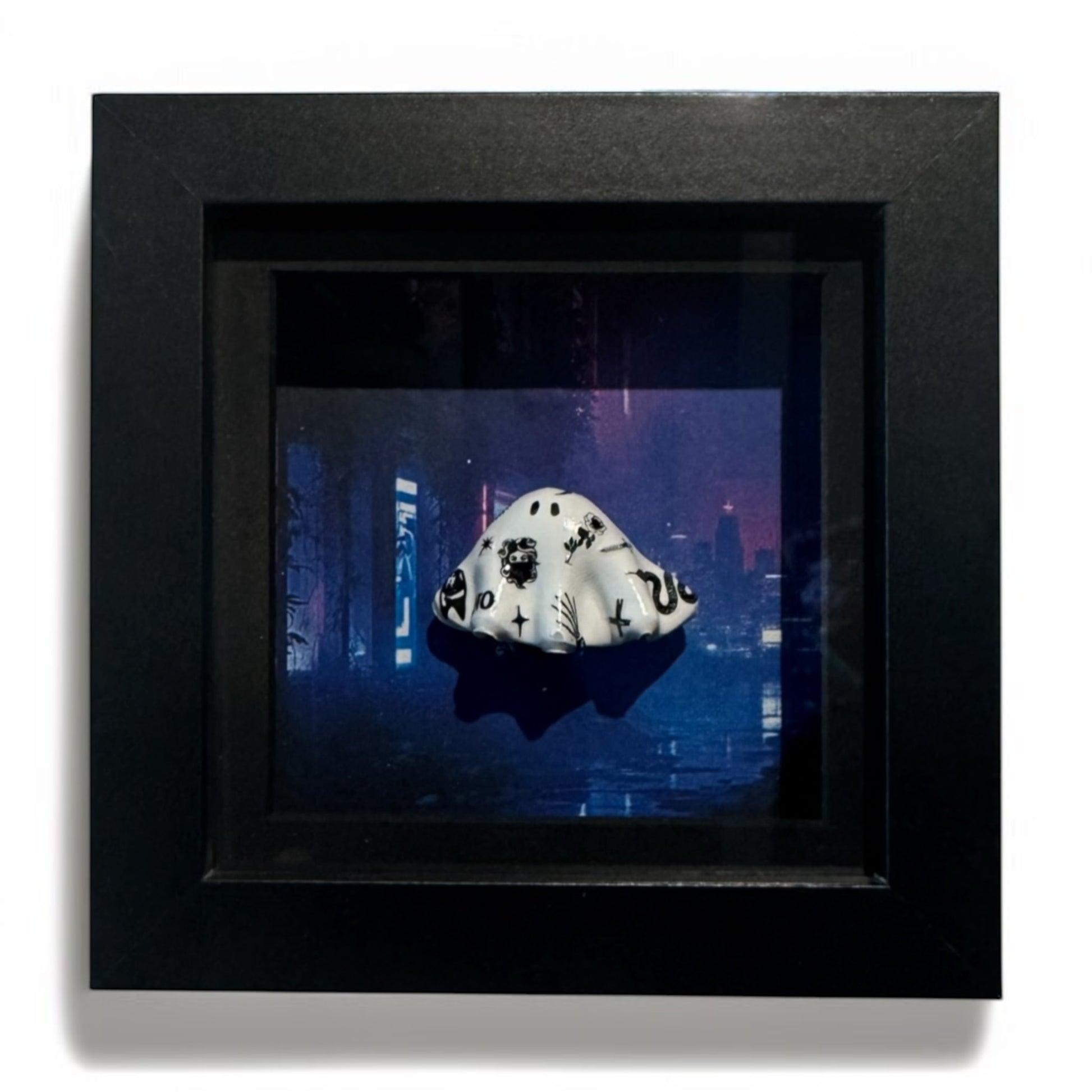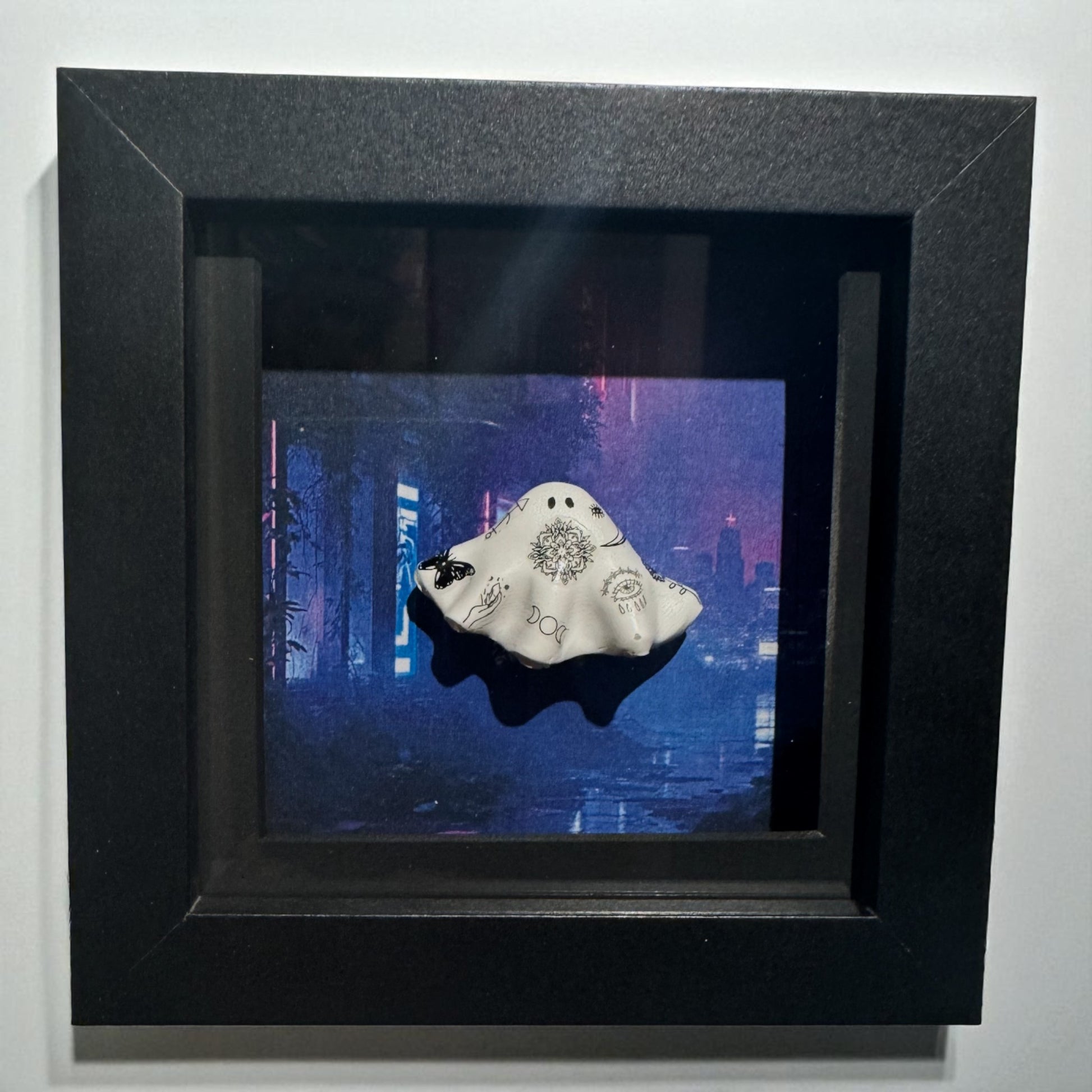 Shadow box frame of the most devious little tattooed ghost in the dark neon city streets