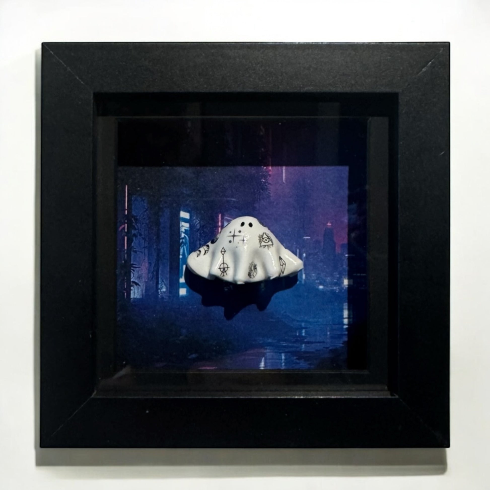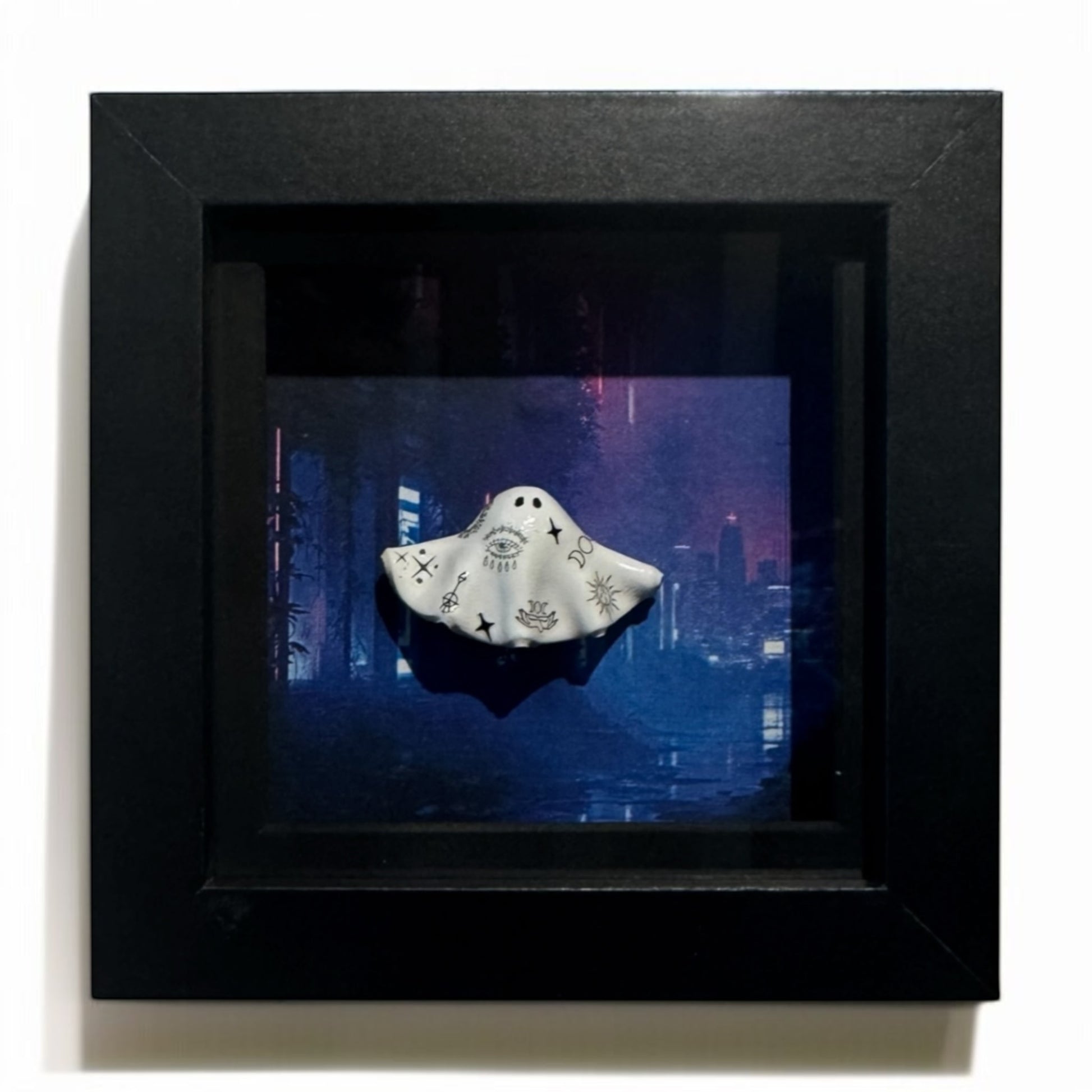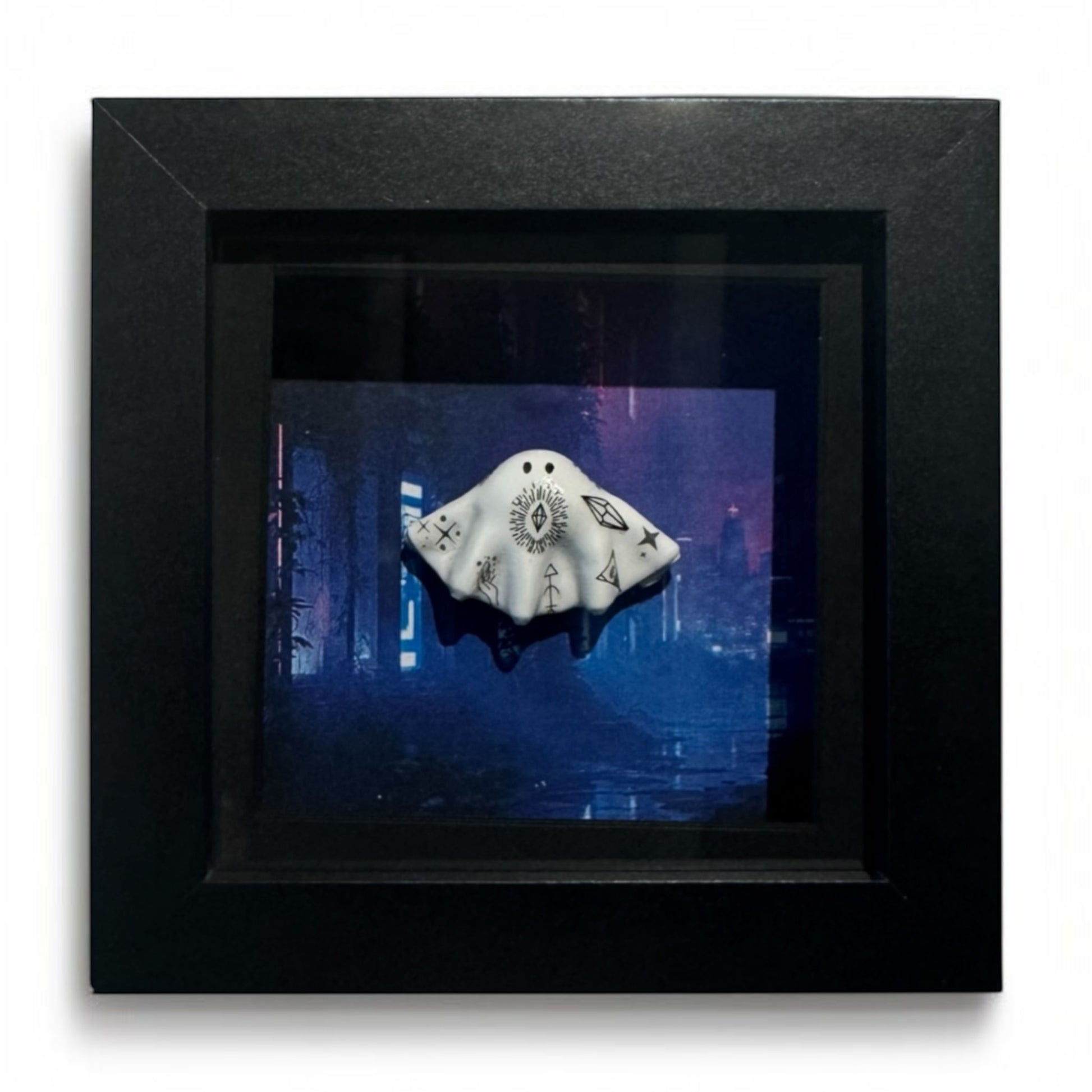 Shadow box frame of the most devious little tattooed ghost in the dark neon city streets